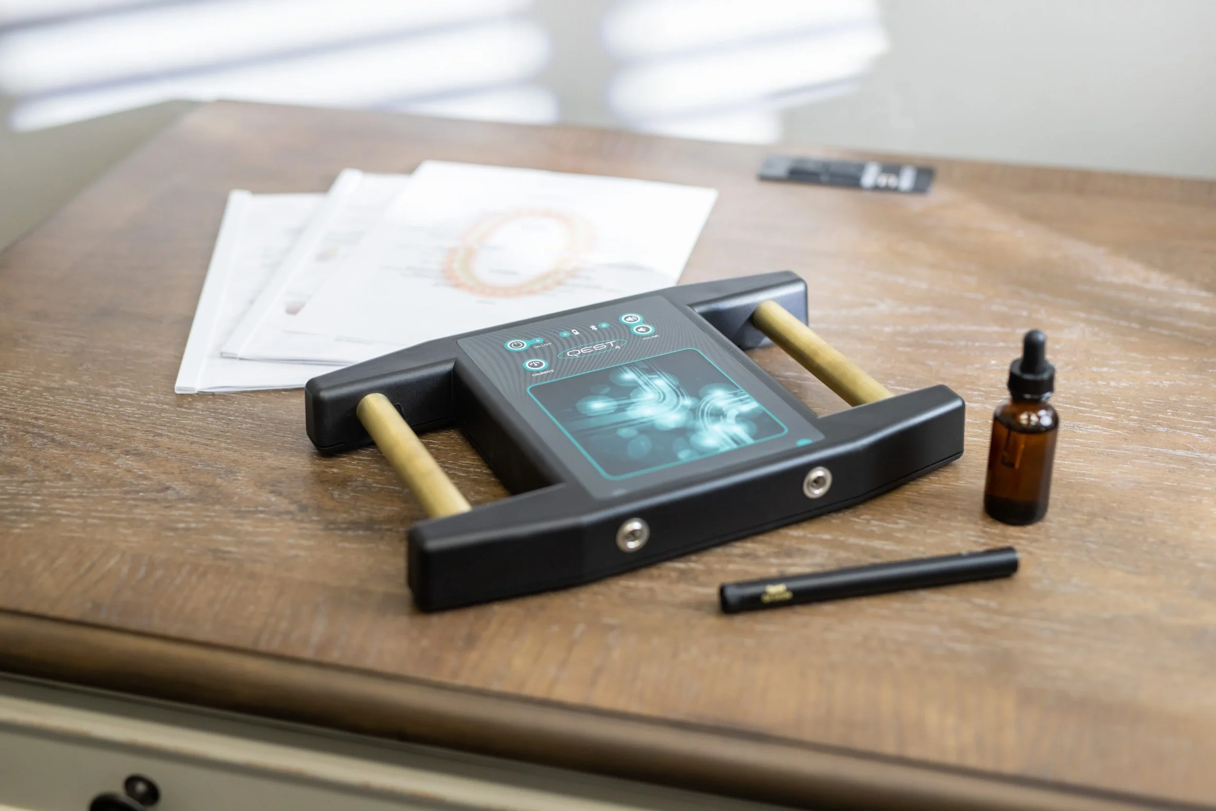 Rooted in quantum physics and decades of bioenergetic research, QEST4 is a sophisticated computerized system that evaluates how your body's energy responds to thousands of informational frequency signatures. Rather than focusing only on symptoms, QEST4 looks deeper, reading the energetic state of organs, glands, and systems to reveal the root causes of imbalance.